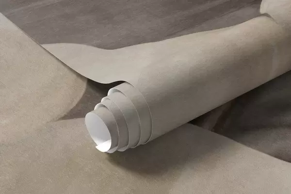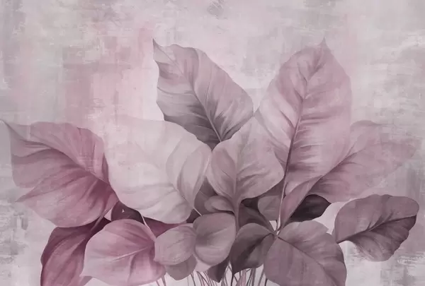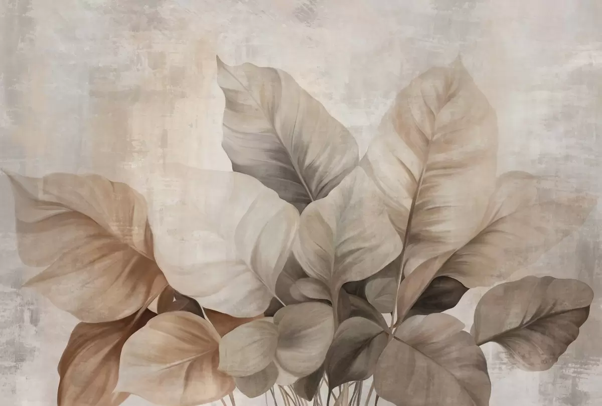 Фототапет Текстурирана имитация на големи, светлокафяви листа върху неутрален фон с фини четковъдни щрихи Nr w09614