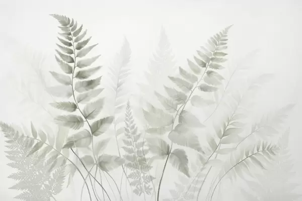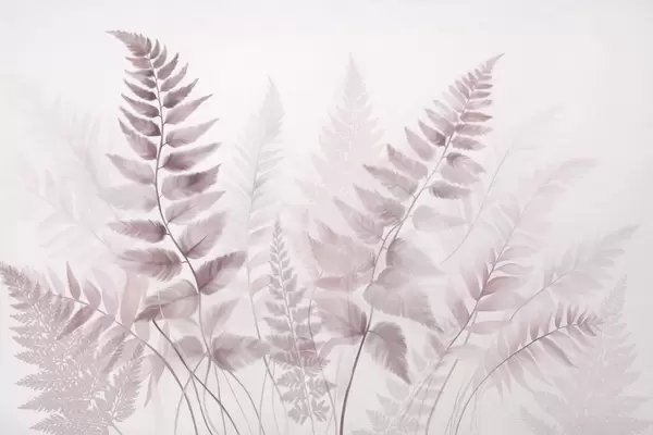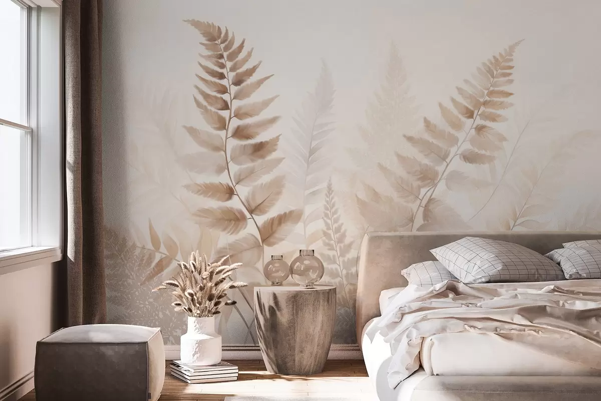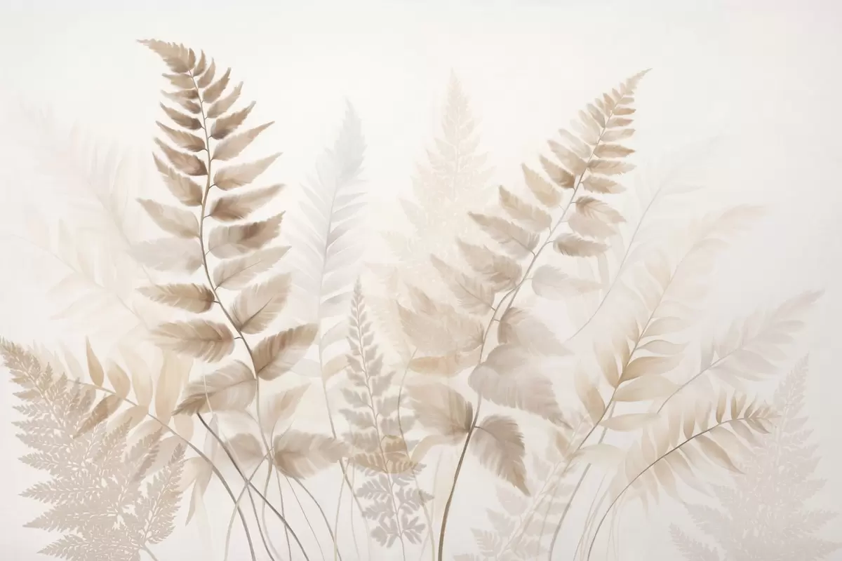 Фототапет Текстурирани изсушени листа от папрат в различни нюанси на кафяво, с мек, светъл фон в акварелен стил Nr w09615
