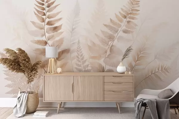 Фототапет Текстурирани изсушени листа от папрат в различни нюанси на кафяво, с мек, светъл фон в акварелен стил Nr w09615