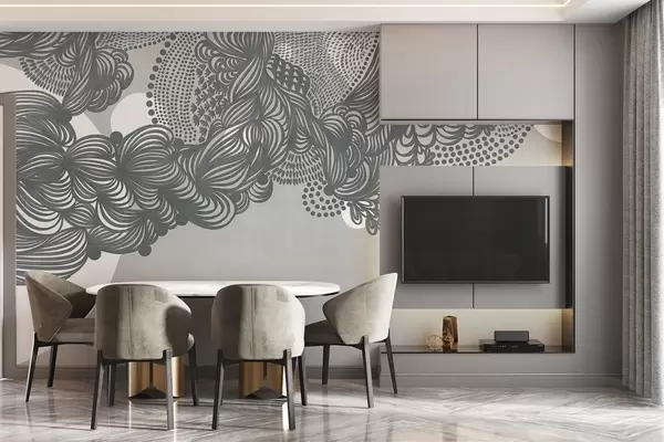 Фототапет Абстрактен текстуриран дизайн на сив фон, с фини линии и пунктирани текстури Nr w09621v1