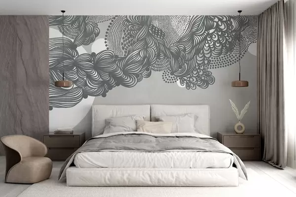 Фототапет Абстрактен текстуриран дизайн на сив фон, с фини линии и пунктирани текстури Nr w09621v1