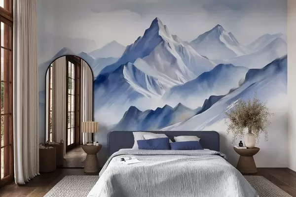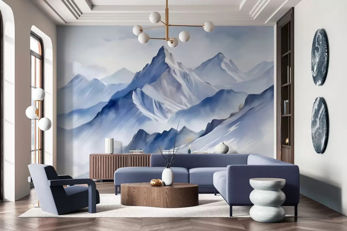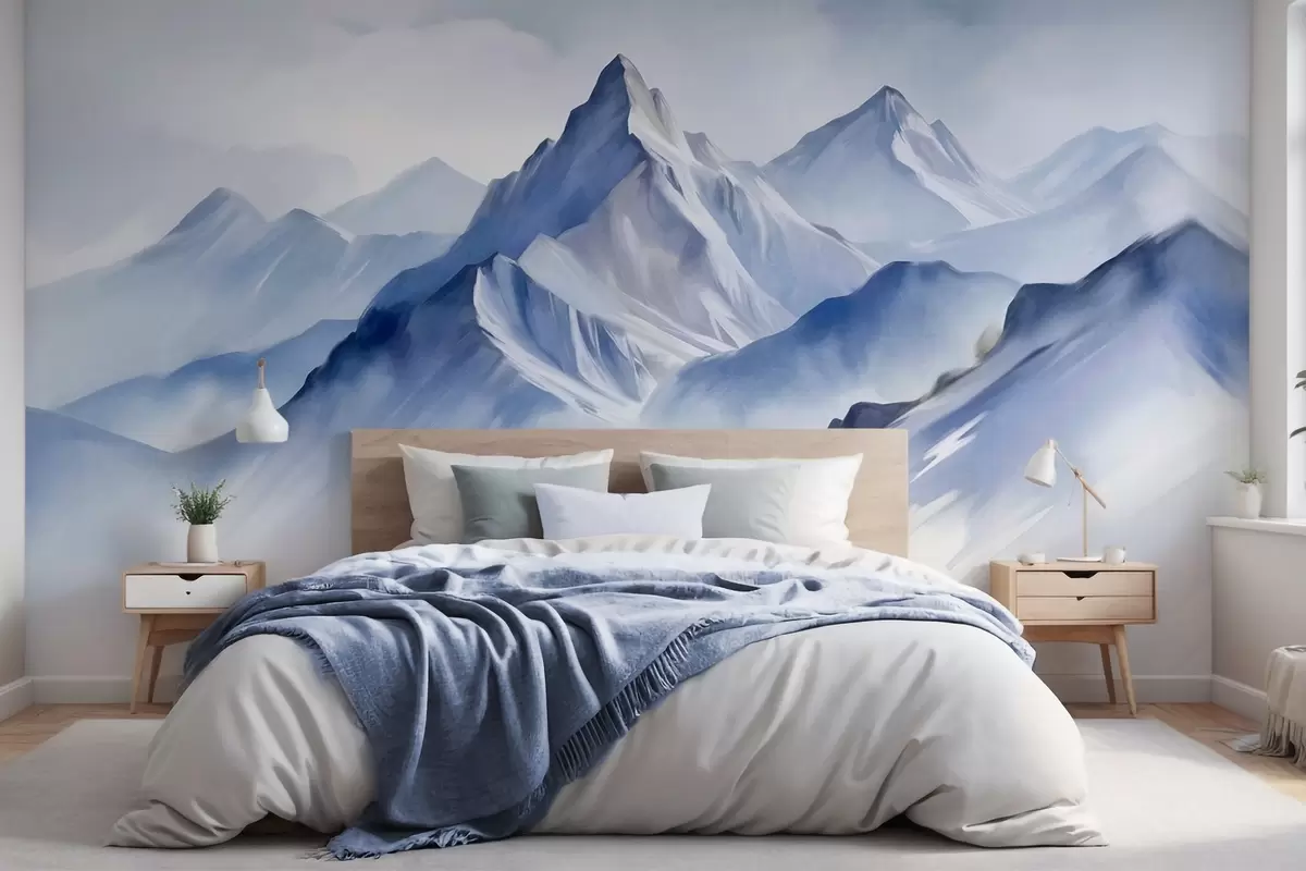 Фототапет Текстурирани заснежени планини с мек акварелен ефект и палитра от синьо и бяло Nr w09630