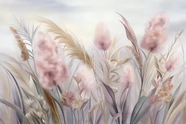 Фототапет Розова и бежова пампасова трева и други сухи цветя на фона на меко, мъгливо небе Nr w09635