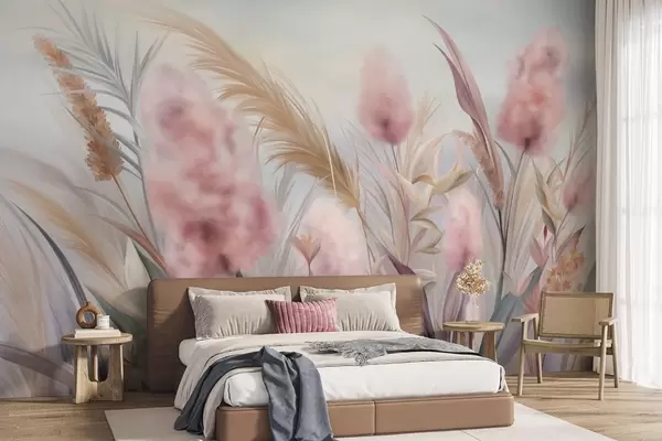 Фототапет Розова и бежова пампасова трева и други сухи цветя на фона на меко, мъгливо небе Nr w09635