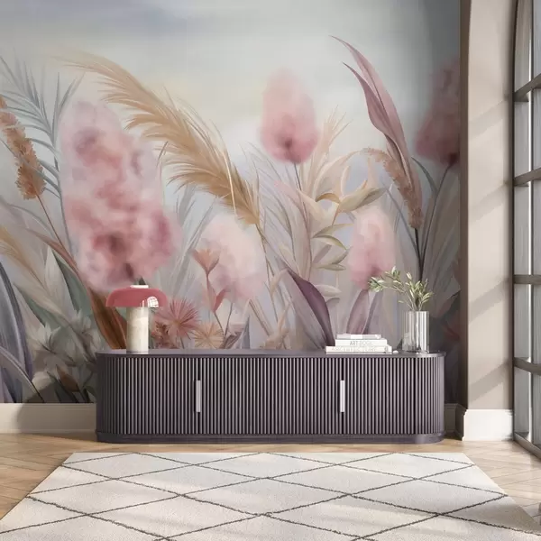 Фототапет Розова и бежова пампасова трева и други сухи цветя на фона на меко, мъгливо небе Nr w09635