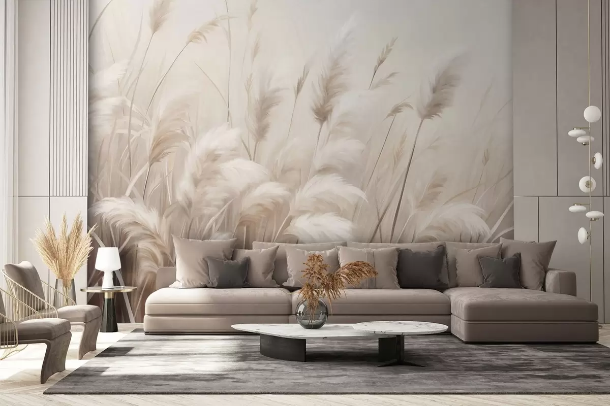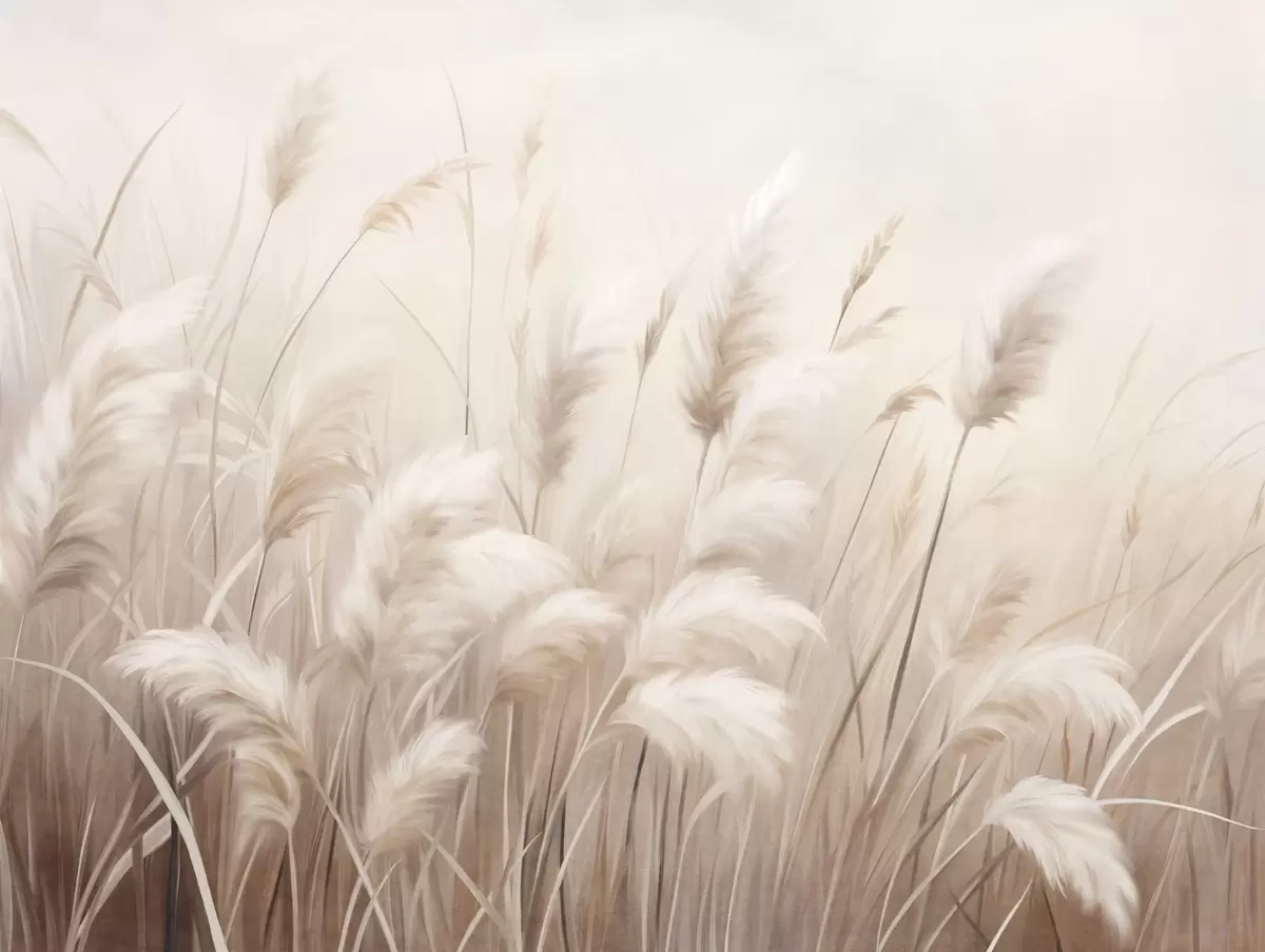 Фототапет Висока, текстурирана пампасова трева в меки, топли, неутрални тонове, с размазан, светъл фон Nr w09637