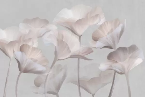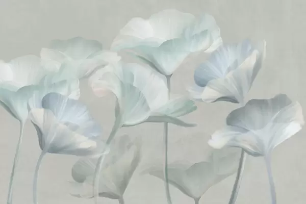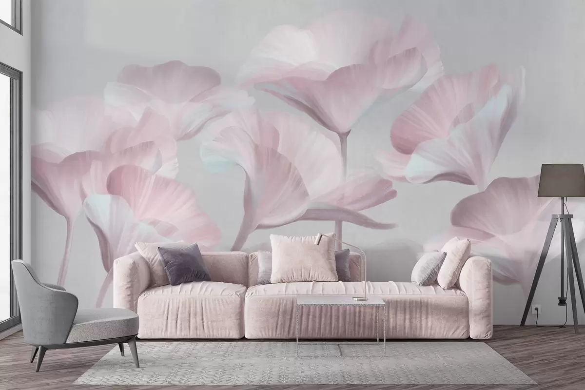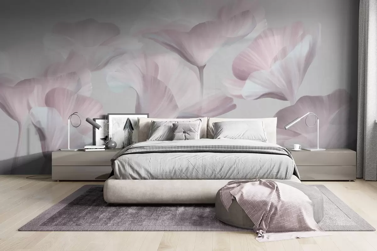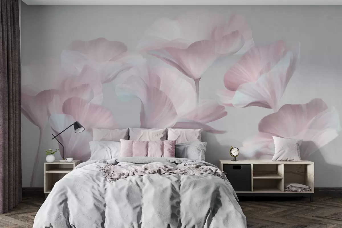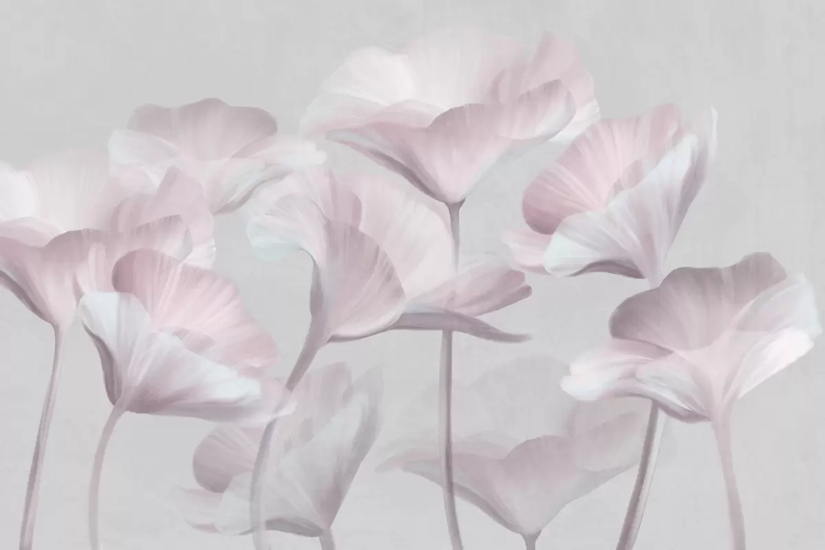 Фототапет Бледорозови прозрачни лотосови цветя с нежни венчелистчета на фона на приглушено сиво Nr w09640v1