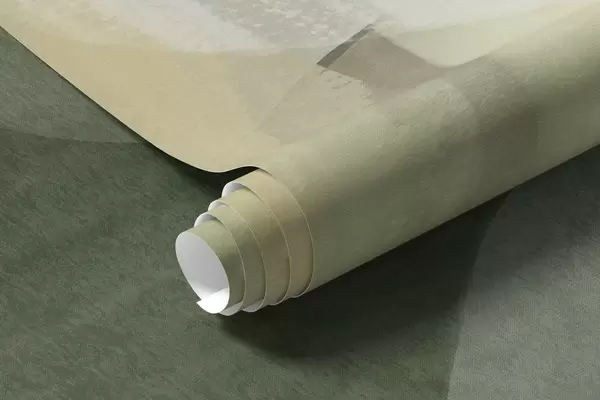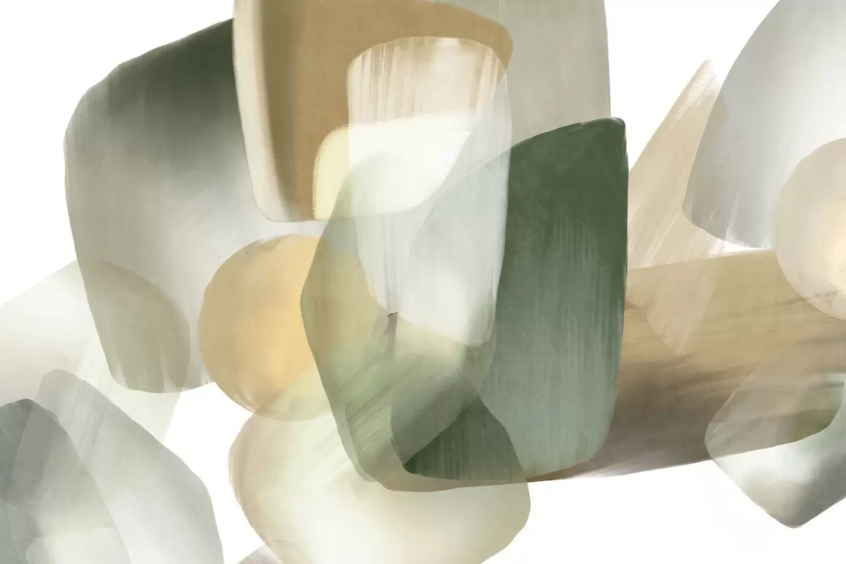 Фототапет Абстрактни текстурирани форми в приглушени зелени и бежови цветове, с меки ръбове и припокриващи се слоеве Nr w09642