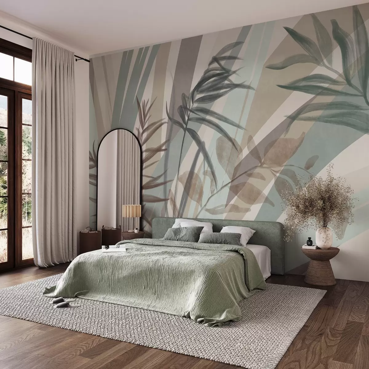 Фототапет Висока текстурирана трева и листа в приглушени земни тонове, с абстрактни линии на заден план, създаващи органичен принт. Nr w09643