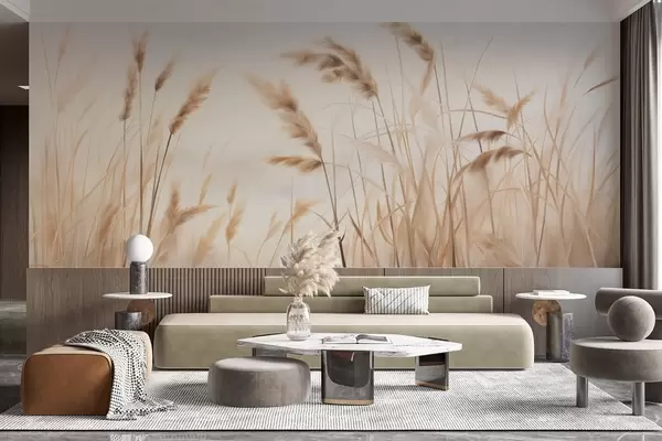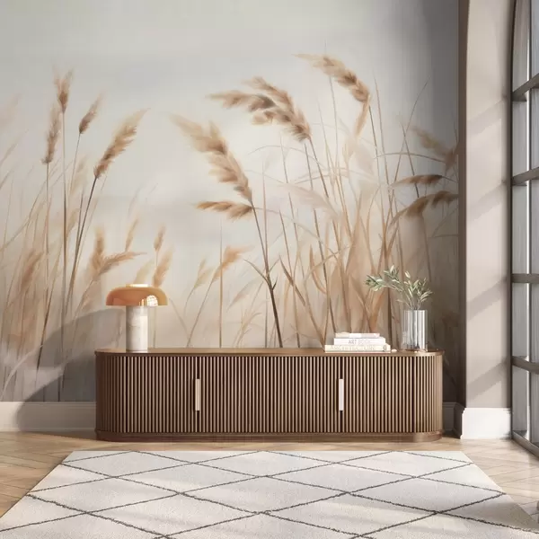 Фототапет Висока, текстурирана суха трева с класове пшеница на полето на фона на мек, блед фон Nr w09648