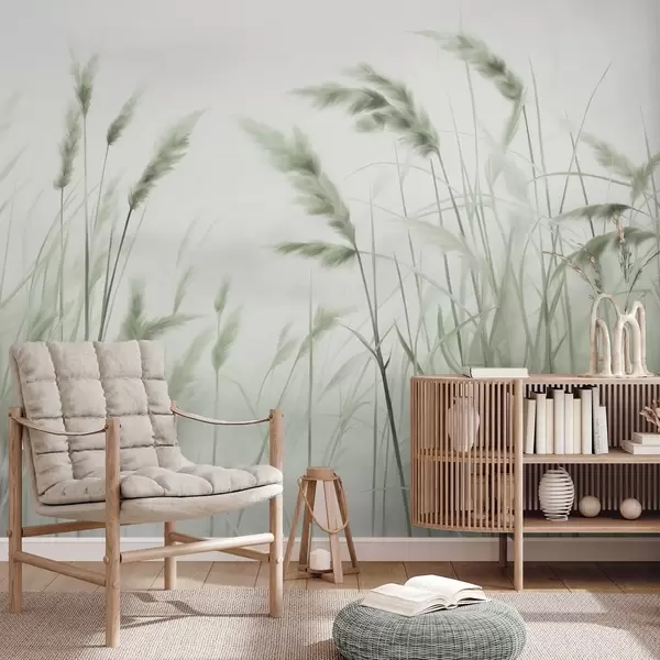 Фототапет Висока, текстурирана суха трева с класове пшеница на полето на фона на мек, блед фон Nr w09648v1