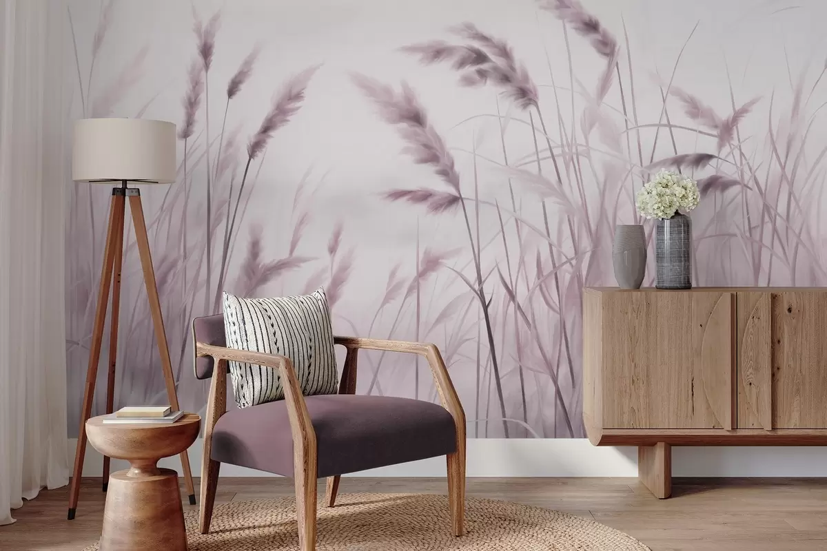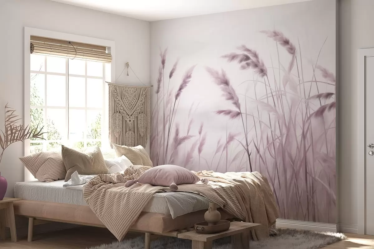 Фототапет Висока, текстурирана суха трева с класове пшеница на полето на фона на мек, блед фон Nr w09648v2