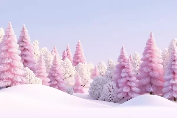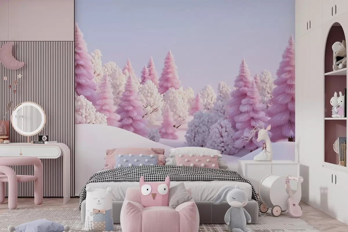 Фототапет Заснежена зимна гора в розови нюанси Nr w09654