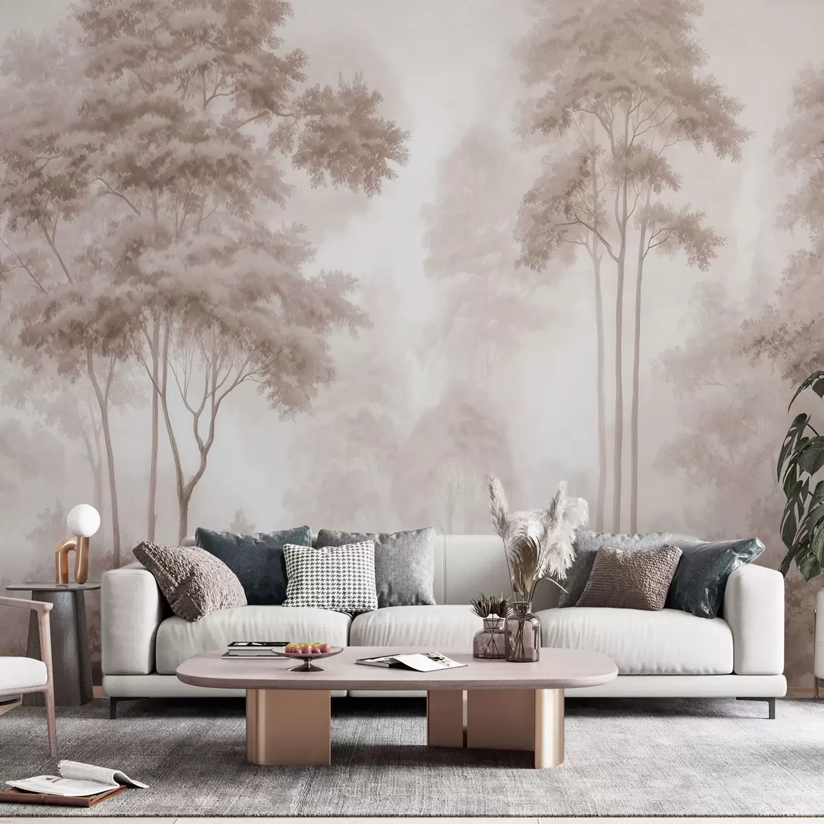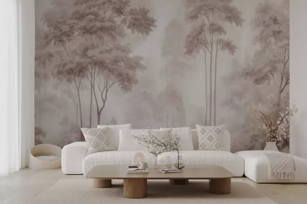 Фототапет Абстрактен горски пейзаж в димни бежови нюанси с усещане за дълбочина Nr w09657