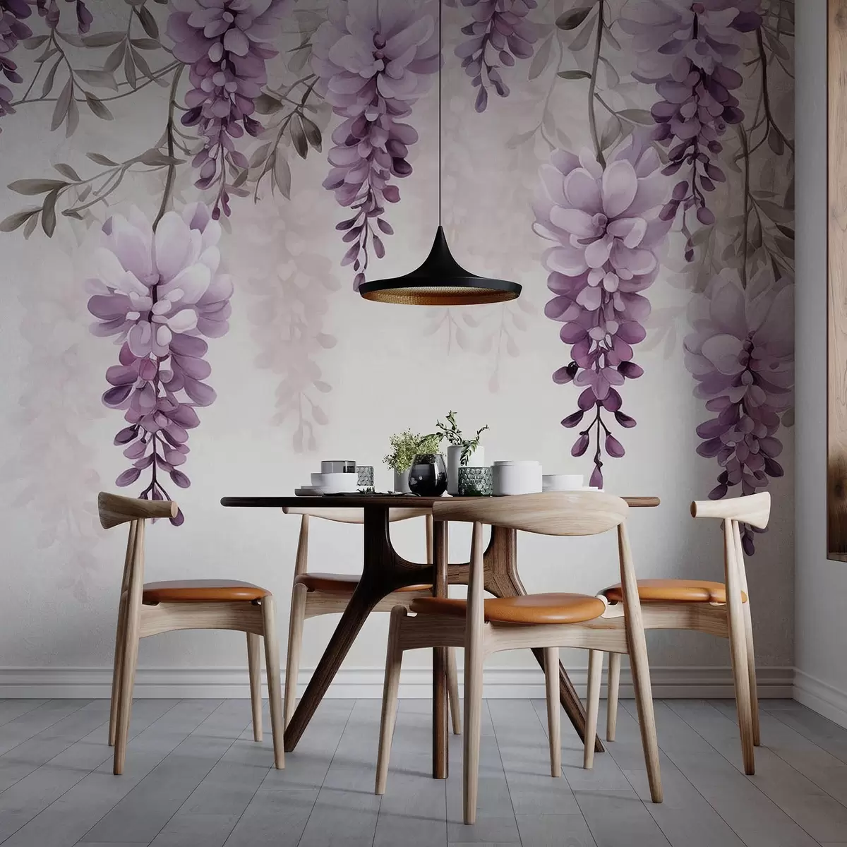 Фототапет Деликатни, големи лавандулови клонки, висящи на стената, имитация на акварел Nr w09690