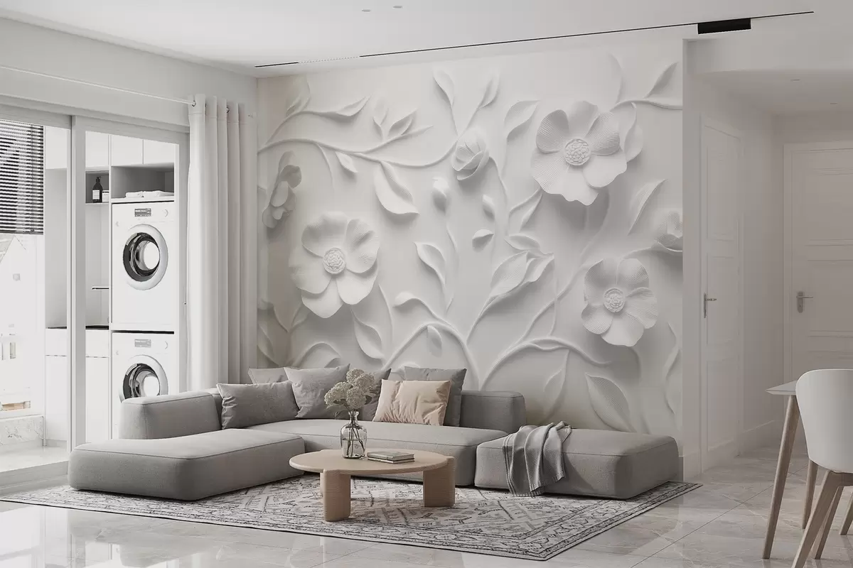 Фототапет Сив релефен флорален орнамент Nr w09710