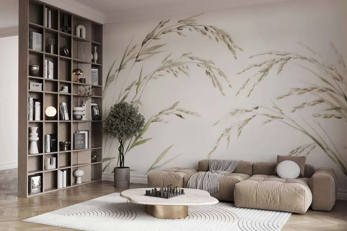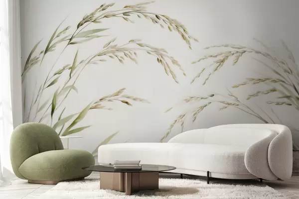 Фототапет Нежни тревисти растения в пастелни тонове с лек акварелен ефект Nr w09712