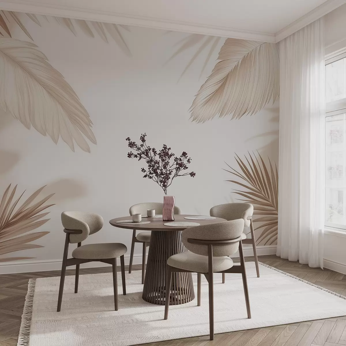 Фототапет Бежов тропически декор със силуети на палмови листа и меки сенки Nr w09714