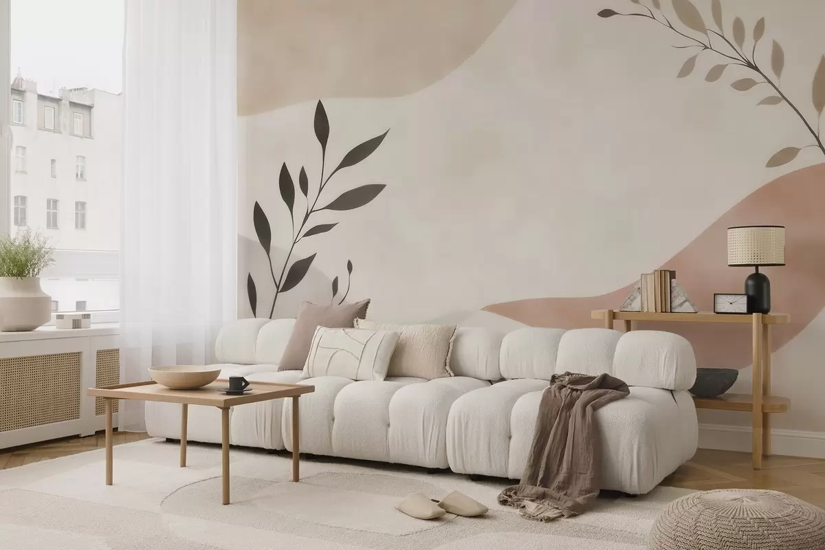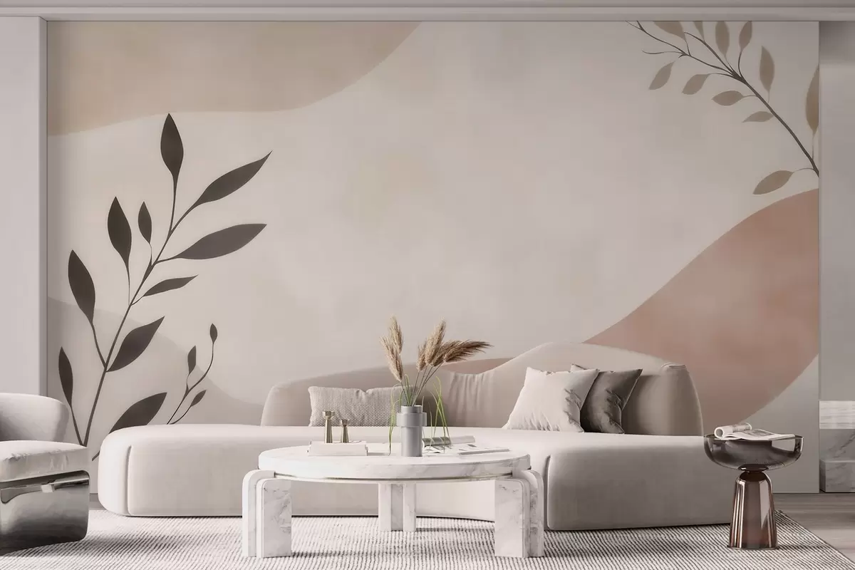 Фототапет Абстрактни бежово-прасковени вълни с клони Nr w09722