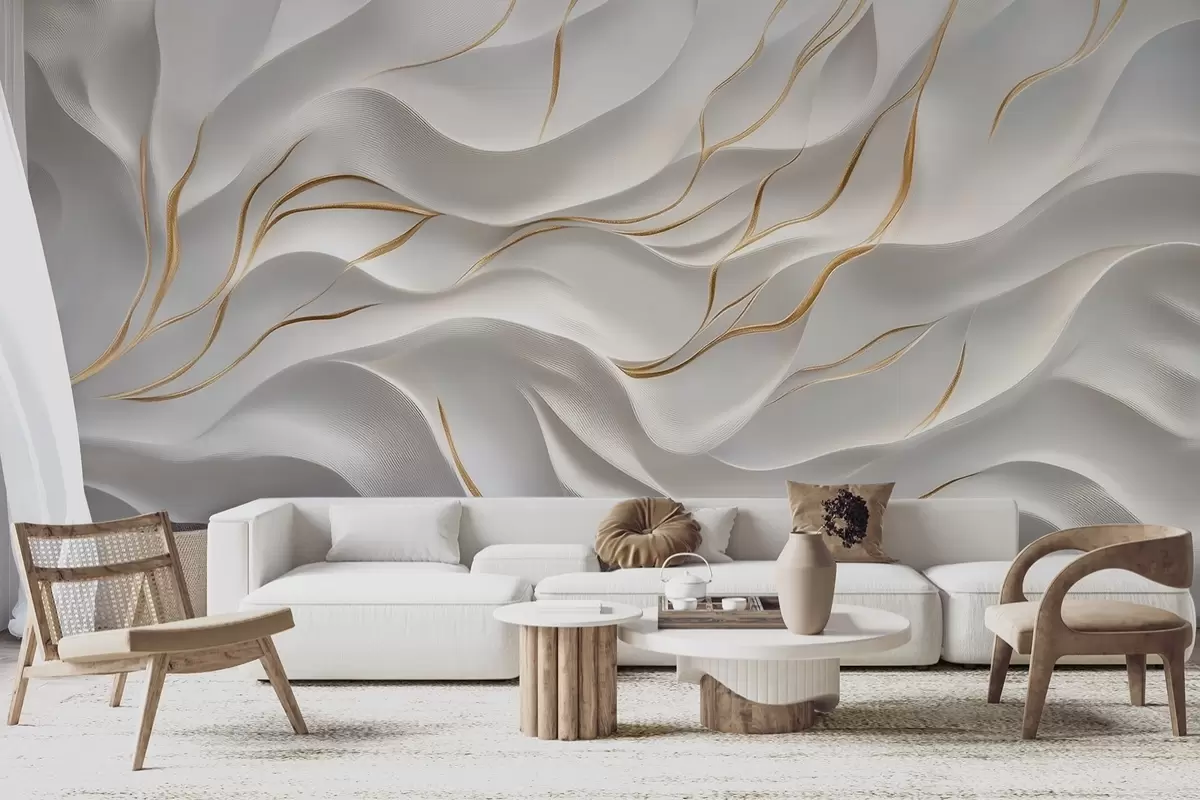 Фототапет Сиви релефни вълни с жълти акценти Nr w09724