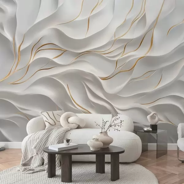 Фототапет Сиви релефни вълни с жълти акценти Nr w09724