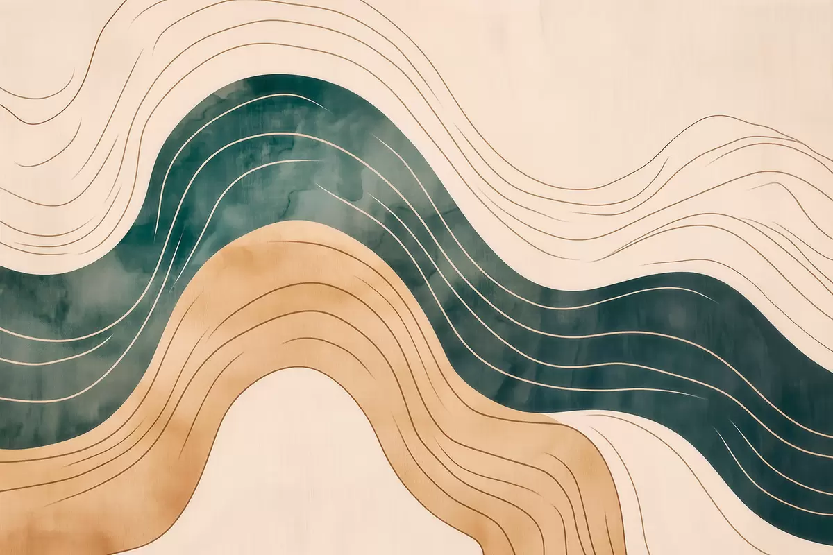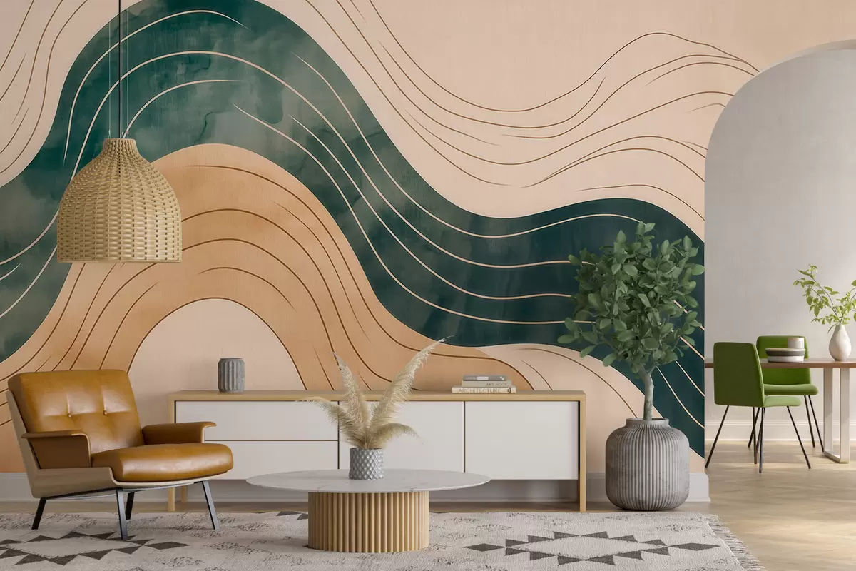 Фототапет Абстрактни вълнообразни линии в естествени пясъчни и смарагдови нюанси Nr w09732