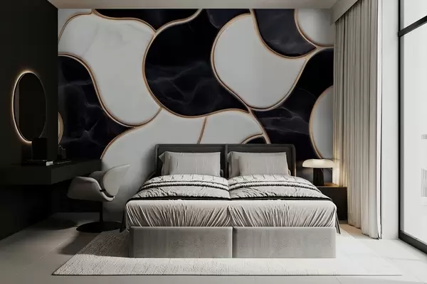 Фототапет Абстрактна имитация на мраморна композиция в черно-бели тонове с жълти линии Nr w09733