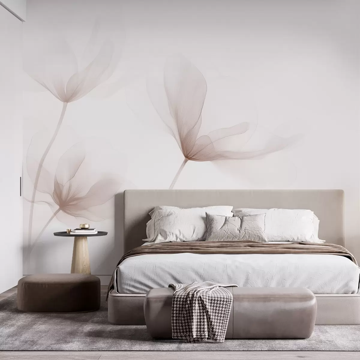 Фототапет Ефирни бежови цветя в минималистичен лек стил Nr w09734