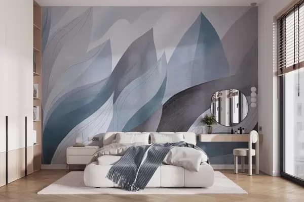Фототапет Абстрактни листа, приглушени земни нюанси на синьо с деликатни линии, мека акварелна текстура Nr w09736v1
