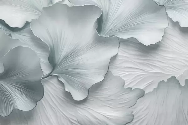 Фототапет Текстурирани, бежови и бели листа от гинко с деликатен органичен принт Nr w09741