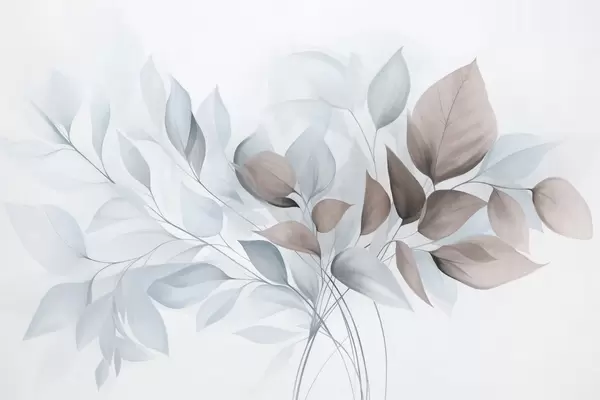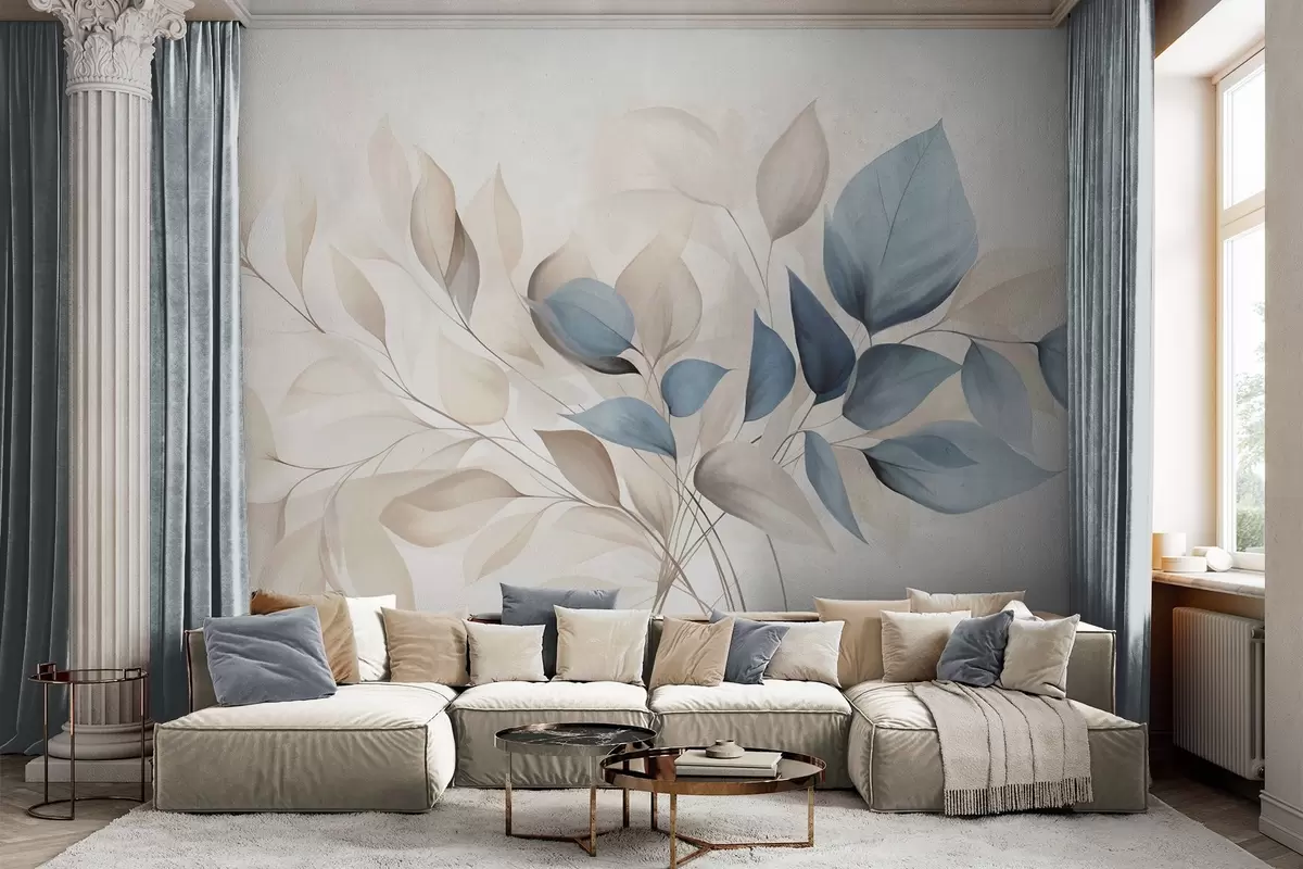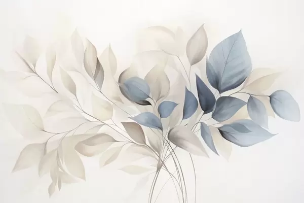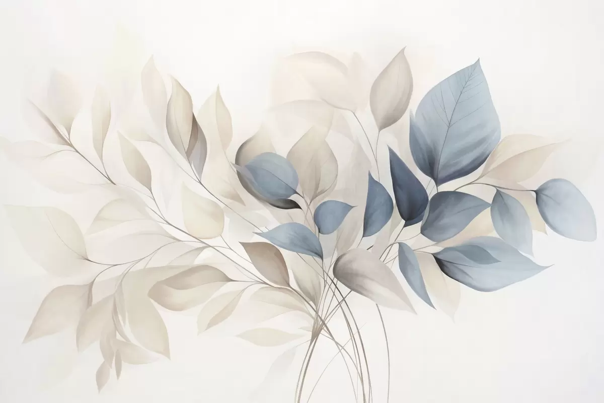Фототапет Абстрактни прозрачни листа в нюанси на синьо, бежово и кремаво, текстурирано изкуство Nr w09744