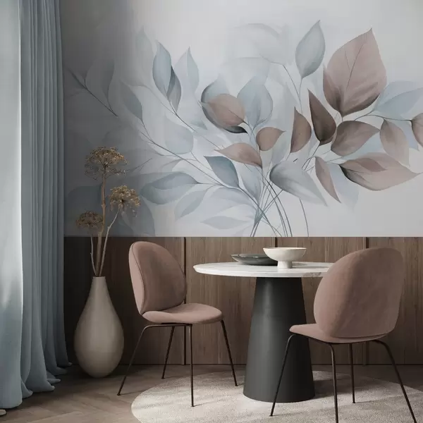 Фототапет Абстрактни прозрачни листа в нюанси на синьо, бежово и кафяво, текстурирано изкуство Nr w09744v1