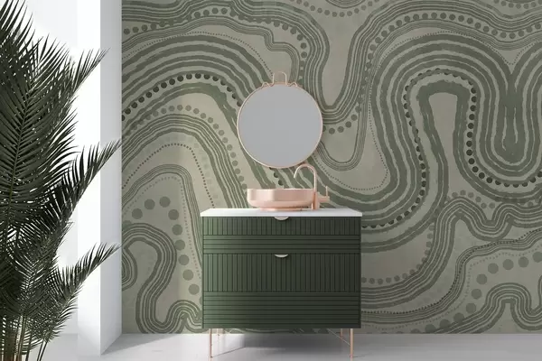 Фототапет Абстрактни зелени и бежови вълнообразни линии и точки, модерно текстурирано изкуство Nr w09747
