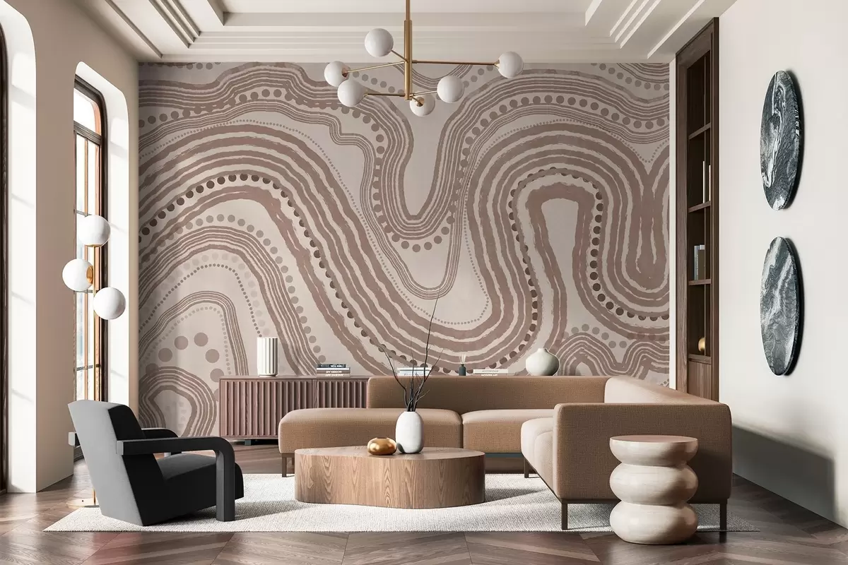 Фототапет Абстрактни кафяви и бежови вълнообразни линии и точки, модерно текстурирано изкуство Nr w09747v1