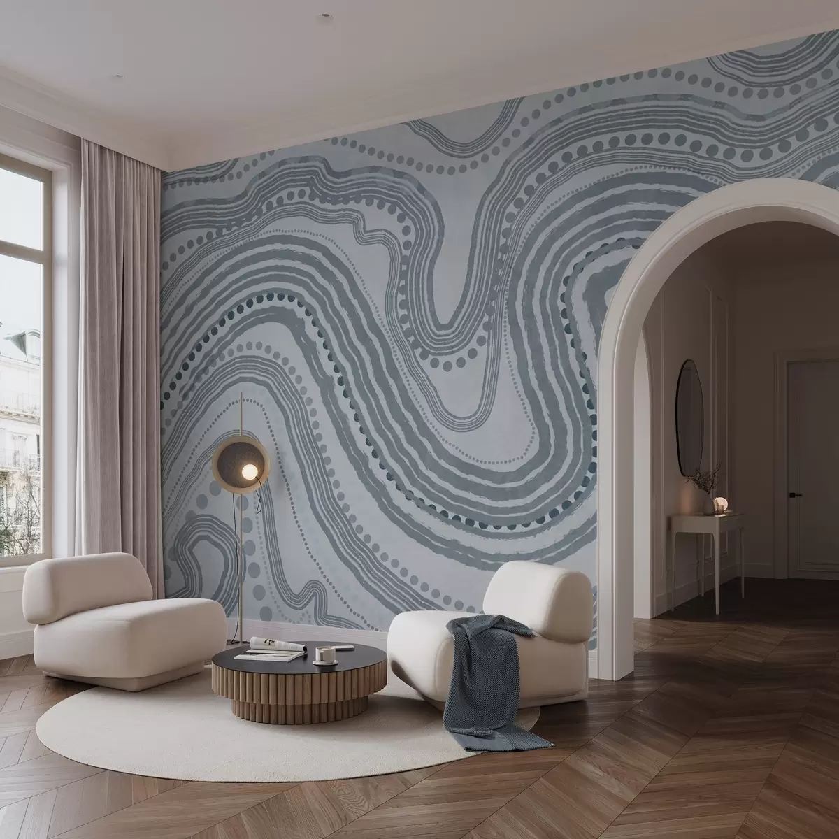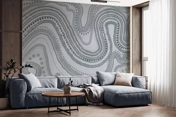 Фототапет Абстрактни сини вълнообразни линии и точки, модерно текстурирано изкуство Nr w09747v3
