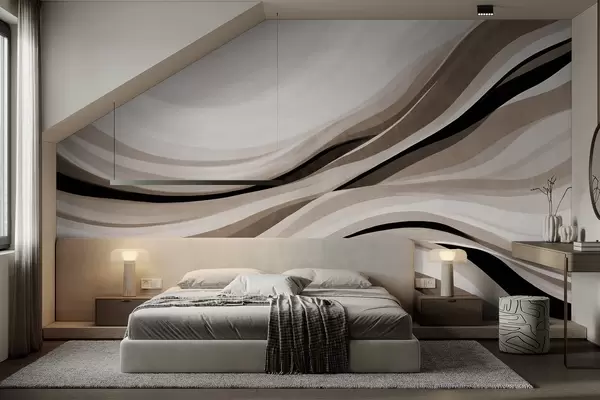 Фототапет Абстрактни вълнообразни линии в нюанси на бежово и черно на светъл фон, текстурирано изкуство Nr w09748