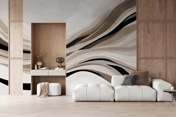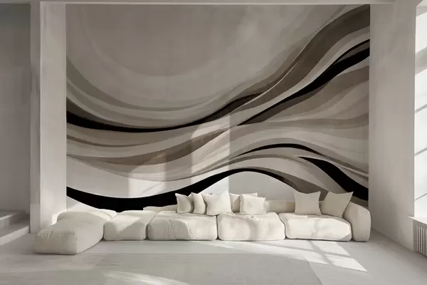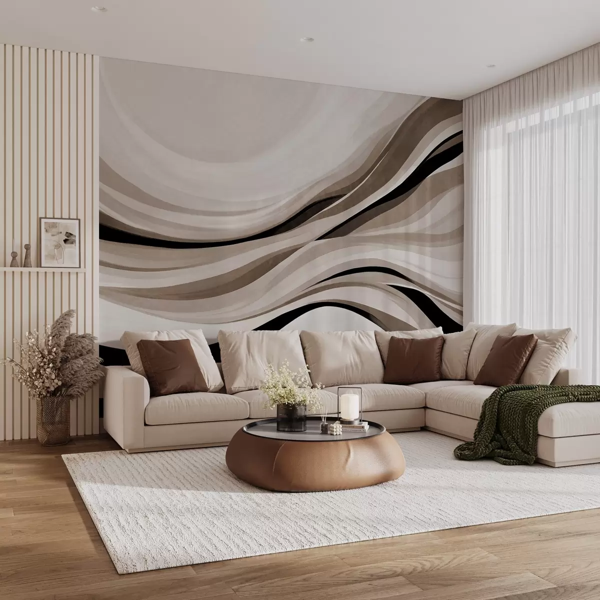 Фототапет Абстрактни вълнообразни линии в нюанси на бежово и черно на светъл фон, текстурирано изкуство Nr w09748