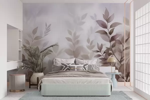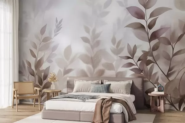 Фототапет Деликатни клони с приглушени кафяви и бежови листа, стил на акварелна живопис, текстурирано изкуство Nr w09750