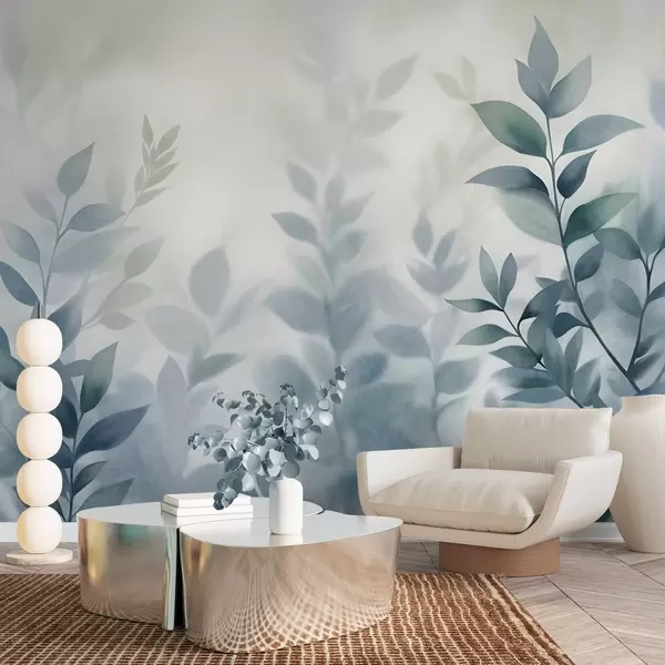 Фототапет Деликатни клони с приглушени сини листа, стил на акварелна живопис, текстурирано изкуство Nr w09750v1