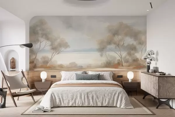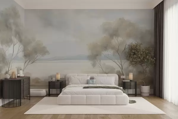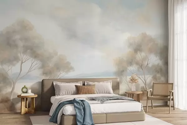 Фототапет Пейзажна картина с текстуриран стил, с дървета под облачно небе Nr w09753