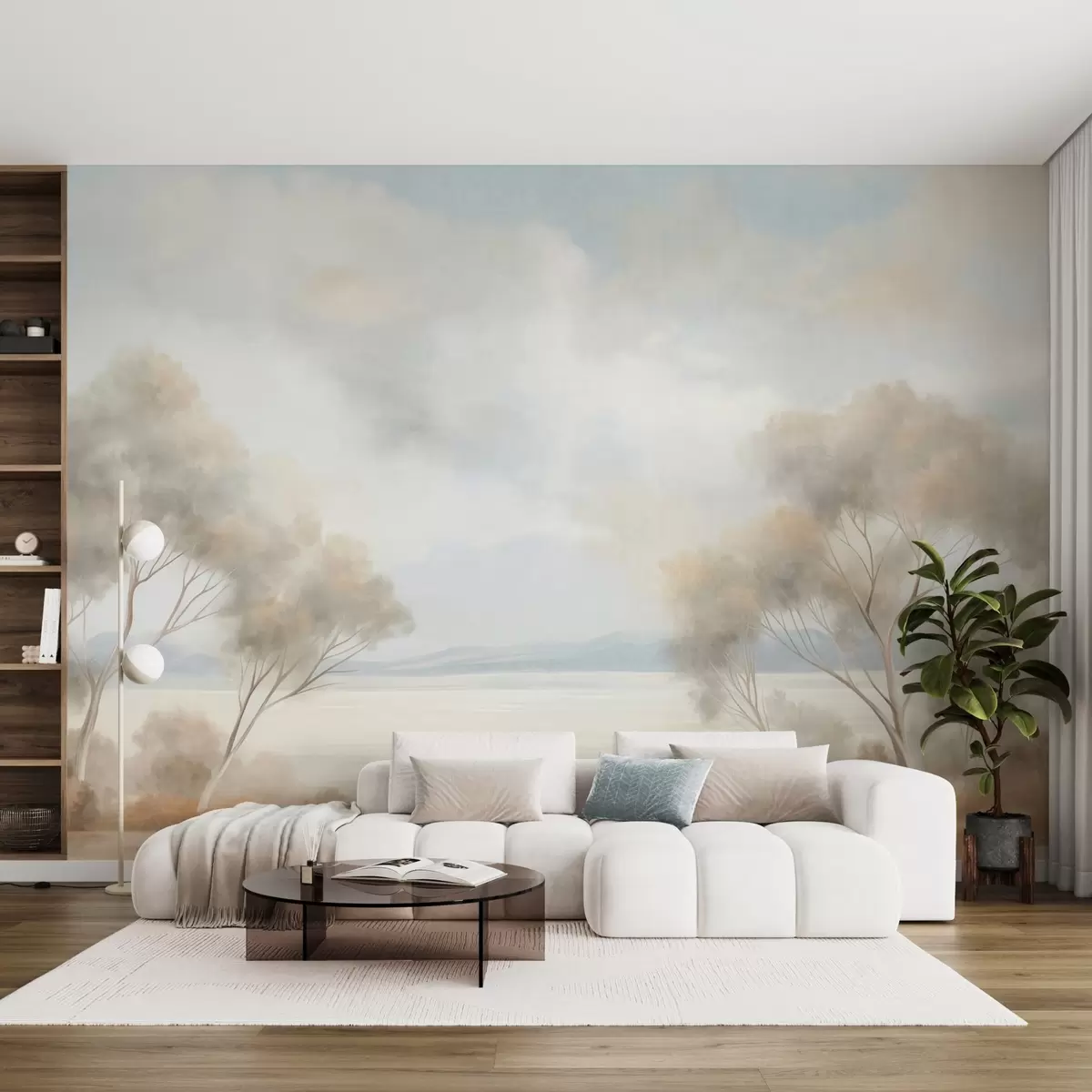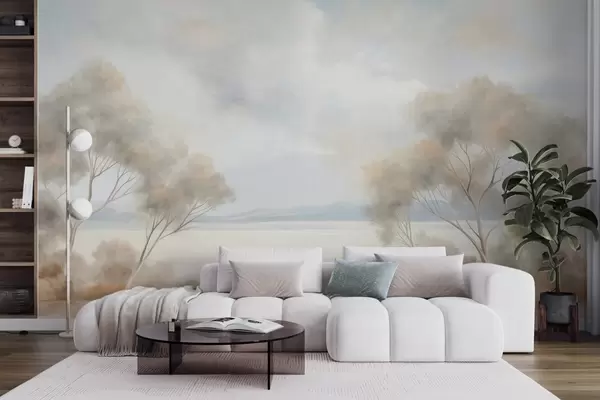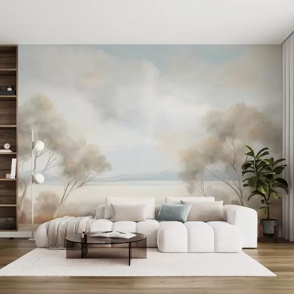 Фототапет Пейзажна картина с текстуриран стил, с дървета под облачно небе Nr w09753