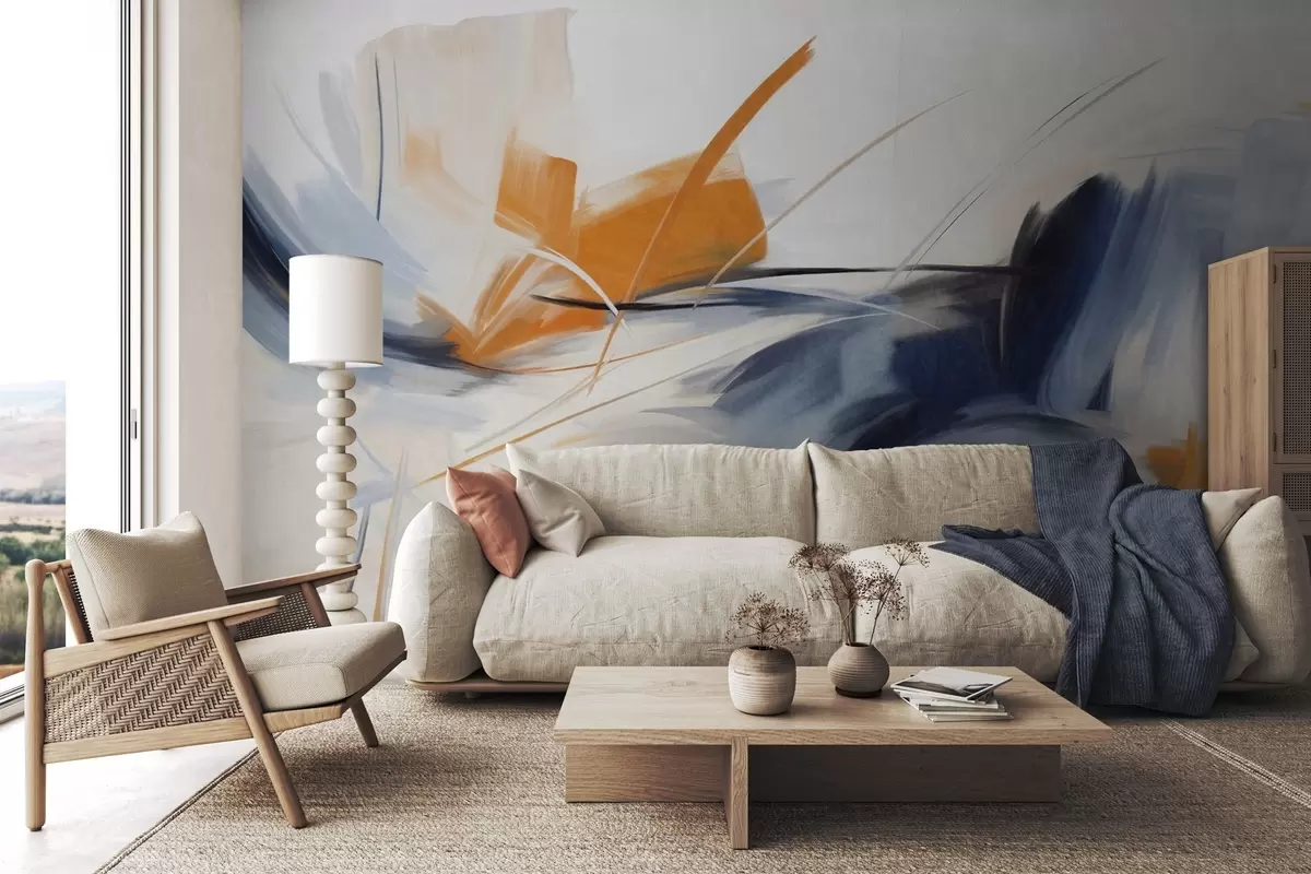 Фототапет Абстрактен стил на рисуване с оранжеви и сини текстурирани мазки Nr w09755