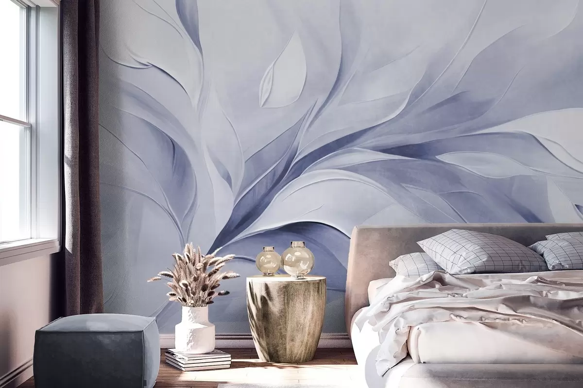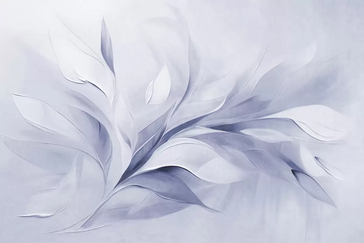 Фототапет Абстрактен стил на рисуване с текстура от бледосини и бели плаващи листа Nr w09765