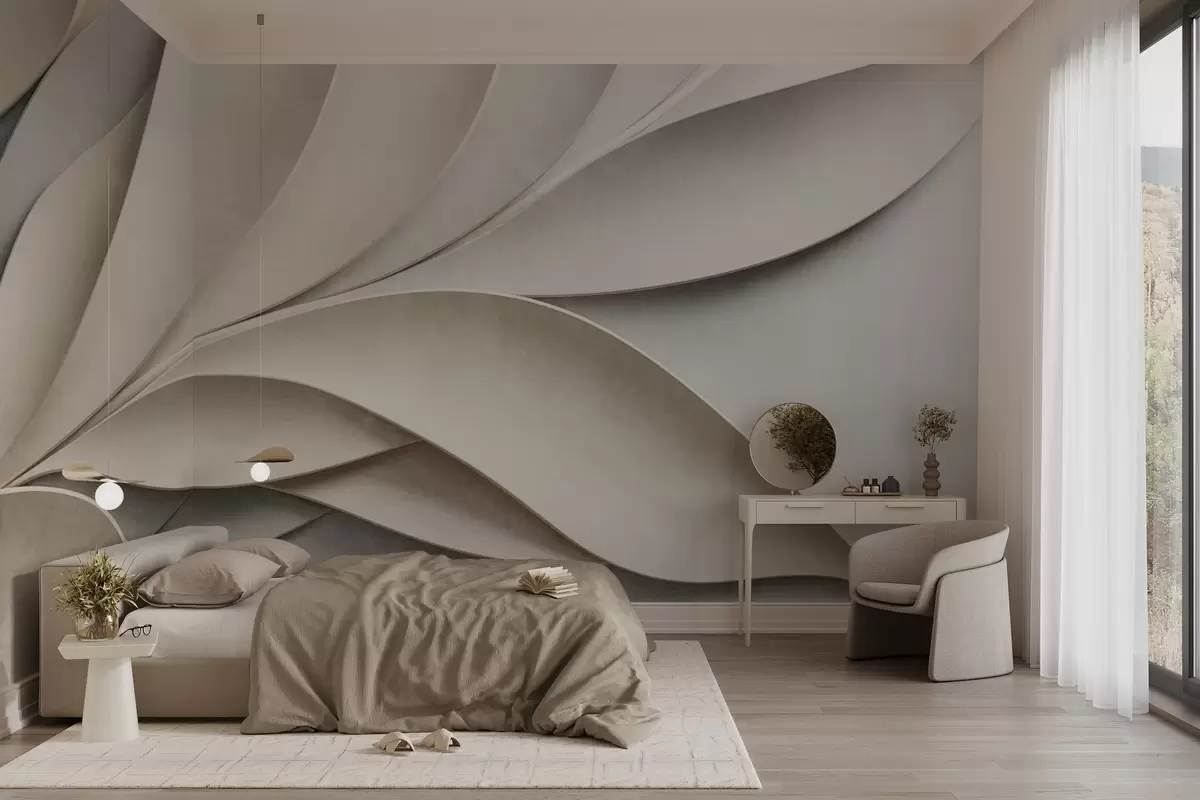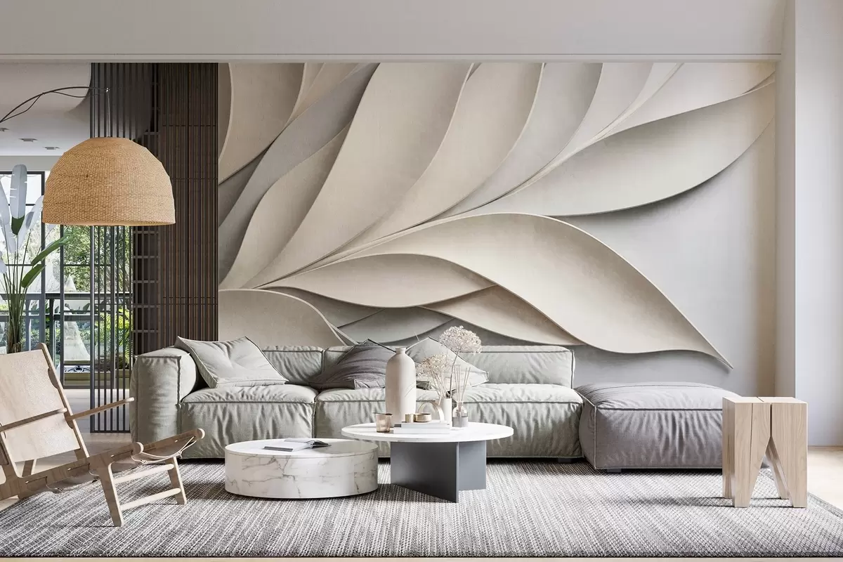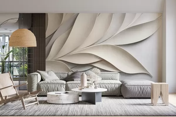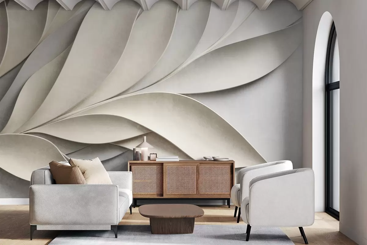 Фототапет Абстрактни листа в бежово и сиво, текстурирано модерно изкуство Nr w09769