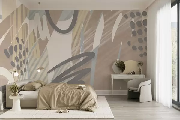 Фототапет Абстрактен принт с текстура, състоящ се от органични форми, драсканици и точки в приглушени пастелни цветове Nr w09774