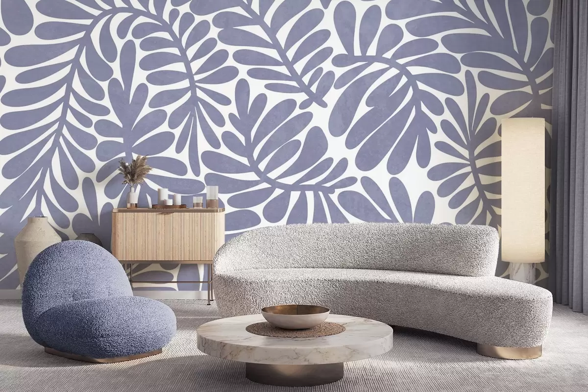 Фототапет Стилизирани светлосини листа на светъл фон, картина с текстура Nr w09775v1
