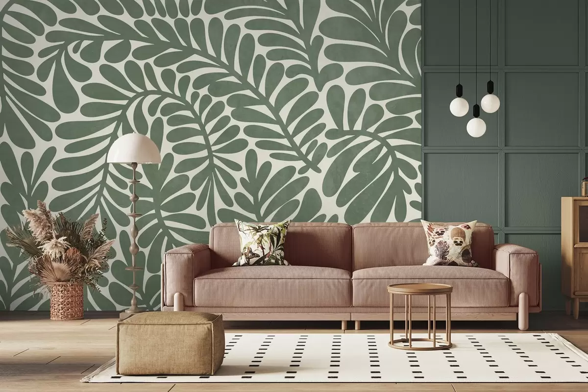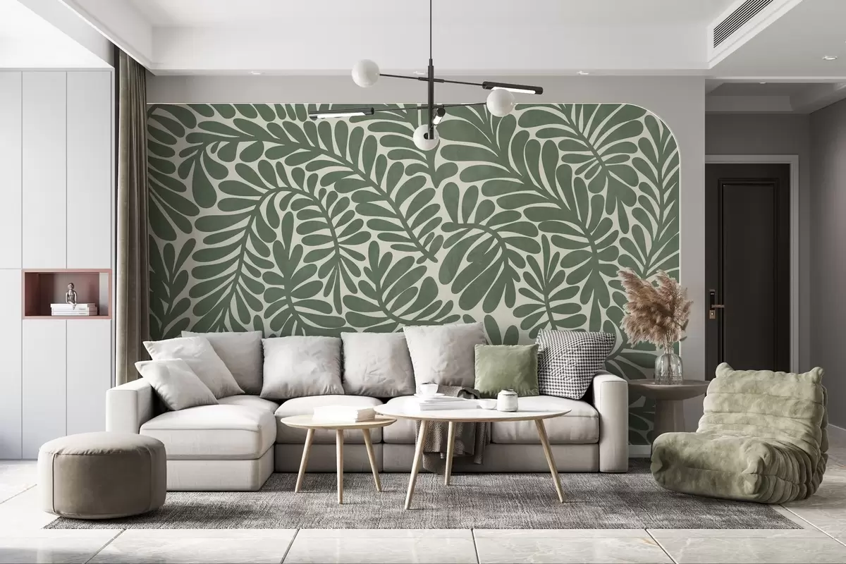 Фототапет Стилизирани зелени листа на светъл фон, картина с текстура Nr w09775v2