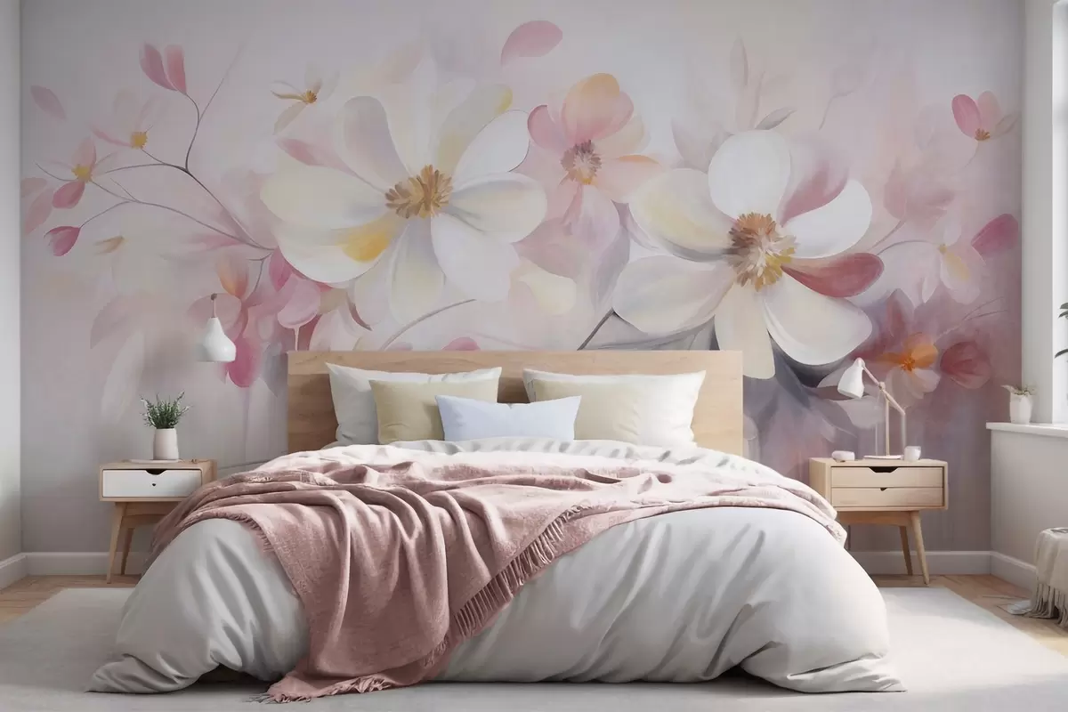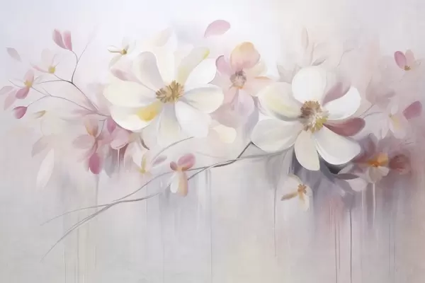 Фототапет Бели и розови цветя с нежни листенца, текстурирана картина, абстрактна, мек фон Nr w09811