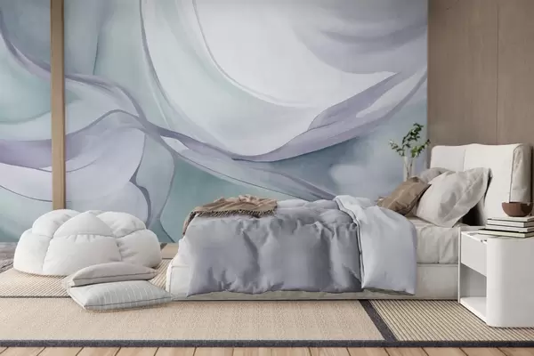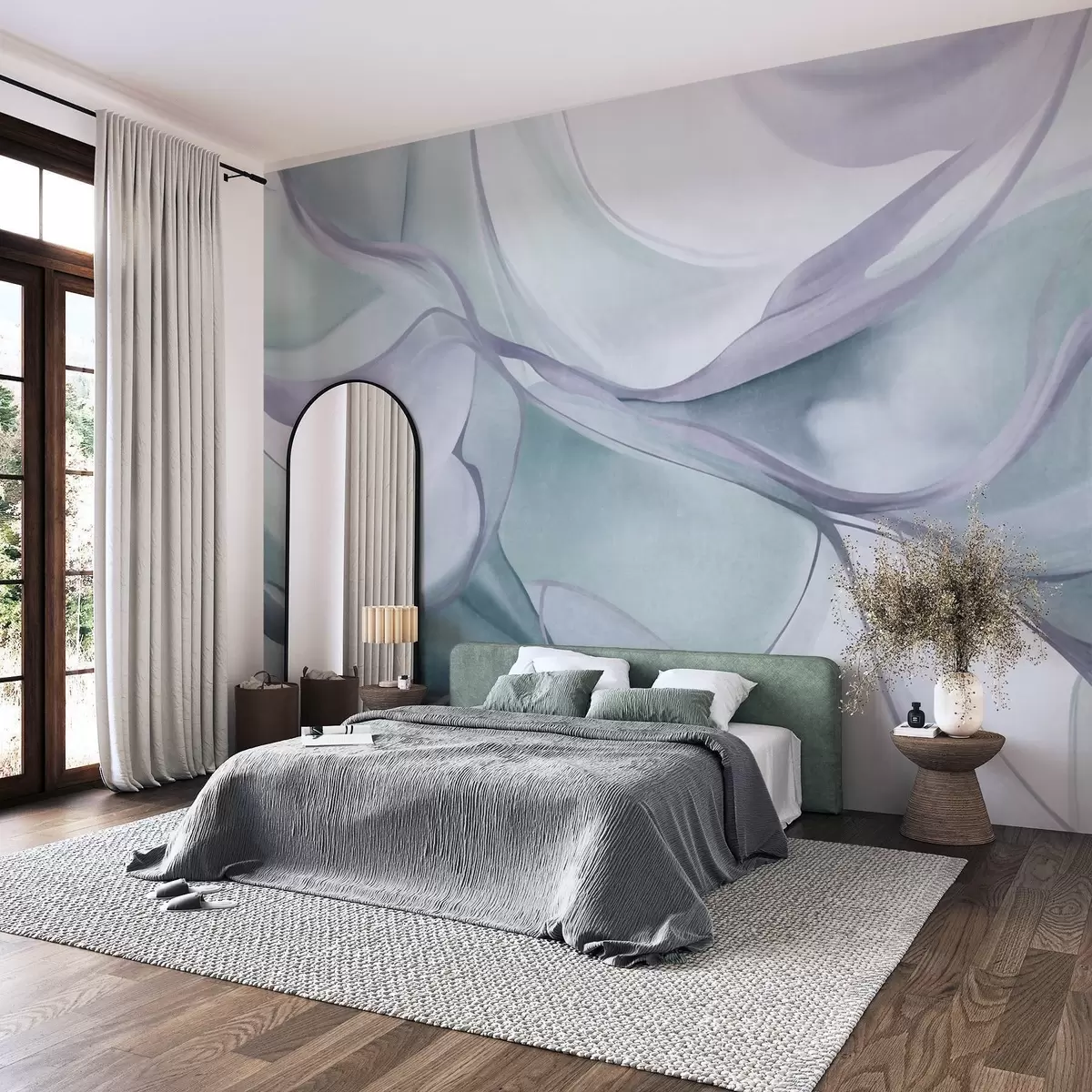 Фототапет Абстрактни, текстурирани, плавни форми в нюанси на синьо и сиво с фини линии Nr w09818v1