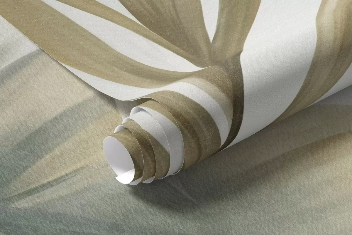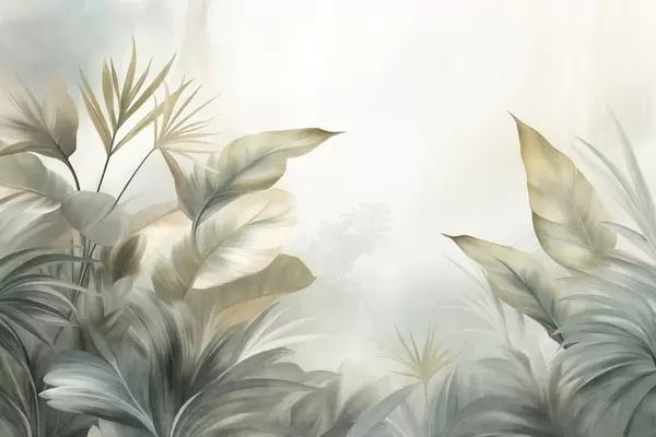 Фототапет Големи, релефни тропически листа в приглушени зелени и бежови нюанси, атмосфера на джунгла Nr w09820